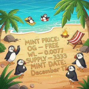 Lil Puffins 鑄造詳情 鑄造日期:12月17日,UTC 下午3點 供應量:3,333 鑄造價格:OG:免費鑄造;WL:0.0077 發射平台:@opensea > Puffin 持有者 + OG (GTD) 價格:免費鑄造 (OG = 每個錢包1個;持有者 = 1:1) 12月17日,UTC 下午3點 > WL (FCFS) (每個錢包3-5個,根據資格而定) 價格:0.0077 ETH 12月17日,UTC 下午4點 > 公眾 12月17日,UTC 下午6點 總供應量:3,333 NFTs - 可鑄造數量:3,111 - 國庫 + 榮譽:222 OG & WL 檢查器即將推出。敬請期待。